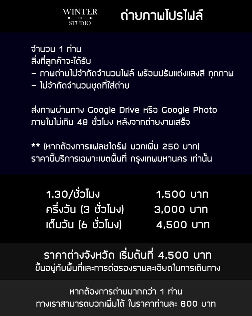 สามารถสอบถามรายละเอียดได้ที่เพจ WinterTHStudio หรือ เบอร์โทรติดต่อ 062-228-3144 **